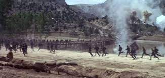 This action gets returned to Blondie, when at some point Tuco captures him and wants to take him through the desert. This time, 100 miles with no hat and no water. Blondie is now being tortured in the same way he tortured Tuco, but how do we feel differently about this? Despite Blondie’s questionable morals, we as the audience see him as the protagonist throughout the film, rooting for him all the way even when he takes advantage of the trust people place on him. Cinematically, we suffer with Blondie, watching as the skin of his face becomes cracked, his begging for the water that Tuco washes his feet in, and ultimately passing out, but we skip past Tuco’s same ordeal. Were we to watch Tuco trudging through the desert as we did Blondie, would we feel differently about Blondie’s actions? This comes as a pointed accusation towards media culture and propaganda with the skewing of narratives. Knowing that Leone was considering the lack of knowledge on what occurred at Union POW camps, it feels as though he’s making a point towards the portrayal of war crimes committed by “the other side” while ignoring the same war crimes the side we support have most definitely committed as well. The dichotomy between these two filmmakers is interesting, as John Ford was an American boy who served in the U.S. Navy during WW2, and as such his portrayal as savagery comes off as through the perspective of someone who may have committed it himself. Leone on the other hand, was an Italian boy who was too young to serve, and grew up watching his home country get decimated by the crossfires of war. It’s less so the justification or villainization of one side or the other, but more so convicting both sides’ actions and how they affected innocent civilians.