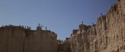 The next day the gang set off, but the sorrowful music and the dour attitude of everyone makes the departure of the Bunch feel like a sort of funeral procession. Angel’s mom comes to bless him on his journey, and keeping Vietnam in mind, this scene plays much like the sending off of newly drafted troops. They’re heading to their doom, and everyone knows. Is their departure as heroic as we think it is? Of course, the Bunch could be considered bad men put in a position to do some good, while American boys drafted to fight in Vietnam are good, innocent children put in a position to fight a pointless war. So there’s differences however the similarity comes to mind and this scene feels like a major turning point for the tone of the film as well as the question of the Bunch’s mortality.