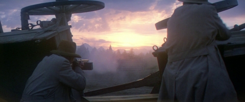 This point is severely punctuated by the penultimate scene of the film. Having buried Champion; Averill, Ella, and J.B. exit the cabin to all of a sudden be halted by the remainders of the Association who without warning gun down Ella and J.B. Averill returns fire but it’s too late. Ella, the image of the immigrant workforce in the film, has also been conquered by the capitalistic “civilized” east. The image of the West in Champion, and the image of the immigrant workforce in Ella have been destroyed. All that’s left is for the east to continue their conquering of land west of them, “from sea to shining sea.” With Averill left behind, he simply gives up.