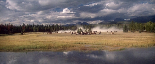 We transition to the final scene, set another 10-15 years later. Averill is back east, on his boat off the coast of Rhode Island. He enters the cabin of his yacht to find his wife, the same girl he met back in Harvard, dysthymic and strewn motionless on a chaise lounge. She asks for a light, with Averill producing his lighter and moving in to light her cigarette. The look in his face isn’t joy, it certainly isn’t peace. He grieves what he left behind, he grieves that through everything he just returned east, where he feels he doesn’t belong. With this final image of his motionless wife, it provides an interesting comparison. In her essay “Western Promises” available in the Criterion Collection release of the film, Giulia D’Agnolo Vallan paints the West as well as Ella as always in motion, ever moving. Ella is incredibly dexterous on horseback, the scene where Champion loses his life shows Ella jumping from her wagon onto the back of her horse when the reins were severed. When Averill gives Ella that carriage in the beginning of the film, she pushes it to a manic speed with Averill pleading her to slow down. She moves between Averill and Champion at her convenience and is only still once she is killed. This image of the wild west and this wild woman juxtaposes with the stillness of Averill’s eastern life, as well as his wife. She lays still and lets Averill come to her to light her cigarette. In the west, with endless chances and opportunities for the homesteaders and immigrants, life is always in motion.