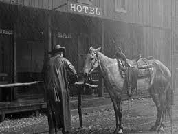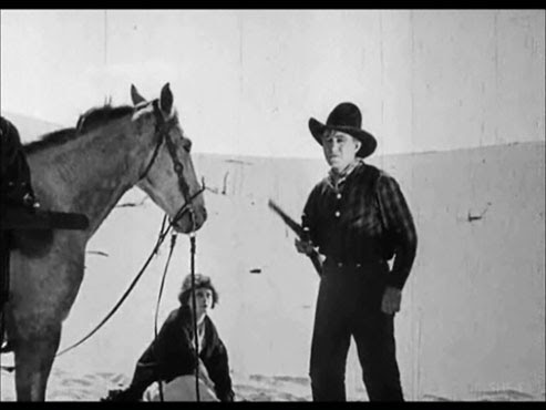 The female lead in this film is Bess Thurston, played by Neva Gerber. Bess’ brother works for Wells Fargo but is unable to support her, so she seeks employment as a dancing girl at a saloon (a position that can almost be seen as a modern stripper). Harry finds himself at this dancing hall in Rawhide where once again, he finds a drinking buddy in a man called “a bad man with a soft heart. But only in some places.” Cimarron Bill is his name, played by Duke R. Lee (who played Flint in Straight Shooting), and he and Harry drink and fight over the last remaining bed in the saloon. An almost slapstick episode with Harry riding his horse into the room, feeding it straw from the pillow, and throwing Cimarron Bill out the window who returns with his pistol drawn to then proceed to throw Harry out the window. Despite this, the two remain compatriots throughout the film, especially once Beau Ross (Joe Harris) makes advances towards Bess.