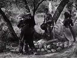 One ever present theme of Ford’s westerns that shows up in this one is the unreliability of people’s loyalties. Namely in this film, “Cheyenne” Harry is hired by “Thunder” Flint, the leader of the cattlemen to chase the homesteading Sims family off of their land. Harry is wanted for a robbery, and crosses paths with not only the town sheriff but also a bounty hunter out to get him. However, Harry buys the hunter a drink and they immediately become the closest of friends. They drunkenly chase off one of the boys related to the Sims family and although they hold their pistols to each other, not quite trusting the other’s intentions, they resume their drinking. Harry has no personal stake in this conflict between the cattlemen and homesteaders, he’s just being paid to do a job. As such, his loyalties lie with the coin and has no need to deviate from that.