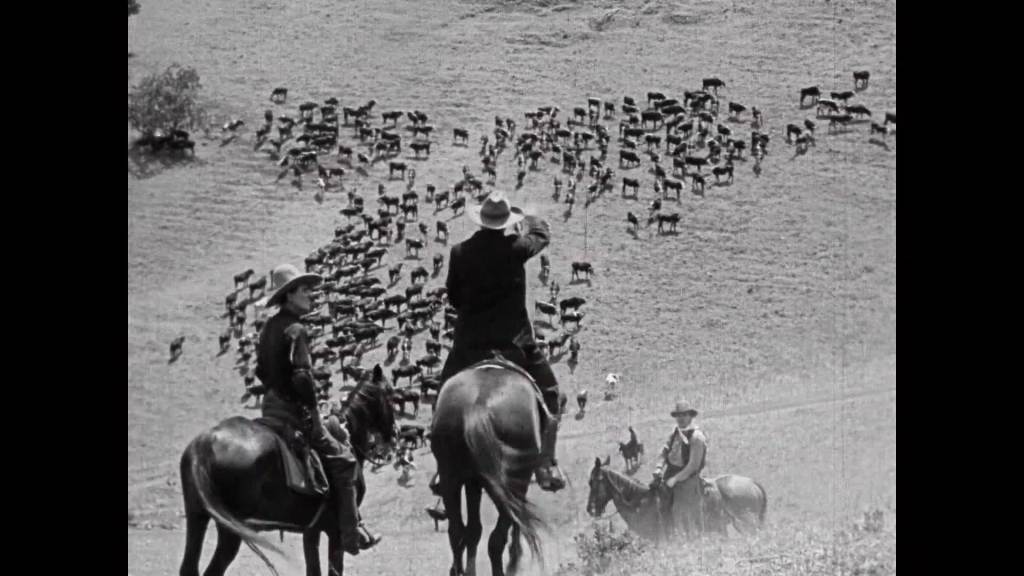The general conflict of the film is in regards to the cattlemen trying to drive the Sims family off their land, but one action they do to initiate the central conflict of the film is setting up fences around the river, claiming that the Sims family will be shot for trespassing. One day, when the son of the Sims family goes to fetch some water, he’s gunned down by Flint’s men. The Sims family grieves and buries the body, but this is when Harry drunkenly happens upon them, gun drawn. But once he sees the young Joan Sims (played by Molly Malone), he refuses to take their life. His morals are questioned and he claims that while he can do a dirty job, this one in particular is just too dirty for him. With this, his loyalties change to protect the Sims family.